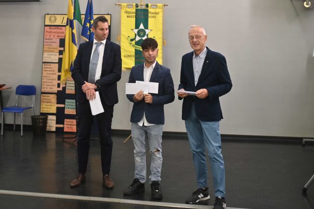 Anche quest’anno il Concorso “Una Stella per la Scuola”, intitolato alla memoria del Maestro del Lavoro Maurizio Chierici, ha rappresentato la tappa conclusiva del progetto «Scuola-Lavoro», organizzato dalla Federazione Nazionale Maestri del Lavoro - Consolato di Parma. Al Concorso hanno partecipato diversi studenti delle classi IV di 6 Istituti Superiori di Parma e Provincia. Il Concorso consiste nella stesura di un elaborato, in cui gli studenti sviluppano le proprie idee e considerazioni in merito agli argomenti trattati con i Maestri del Lavoro nel corso degli incontri durante l’anno scolastico 2024-2025, nonché i loro sogni, speranze, aspirazioni, senza dimenticare le preoccupazioni legate al loro futuro inserimento nel mondo del lavoro. Per ogni Istituto viene premiato almeno uno studente, ma quest’anno, considerata la qualità degli elaborati raccolti, i Maestri del Lavoro hanno deciso di premiare ben 11 studenti, a cui è stato consegnato un premio di 300€, con un super-premio di 500€ assegnato al migliore elaborato tra gli 11 vincitori. La premiazione è avvenuta venerdì 24 ottobre presso l’Istituto IPSIA – P. Levi con una folta partecipazione di studenti, docenti e genitori. al termine di è tenuto un piccolo breack presso il bar della scuola offerto dai Maestri del Lavoro.